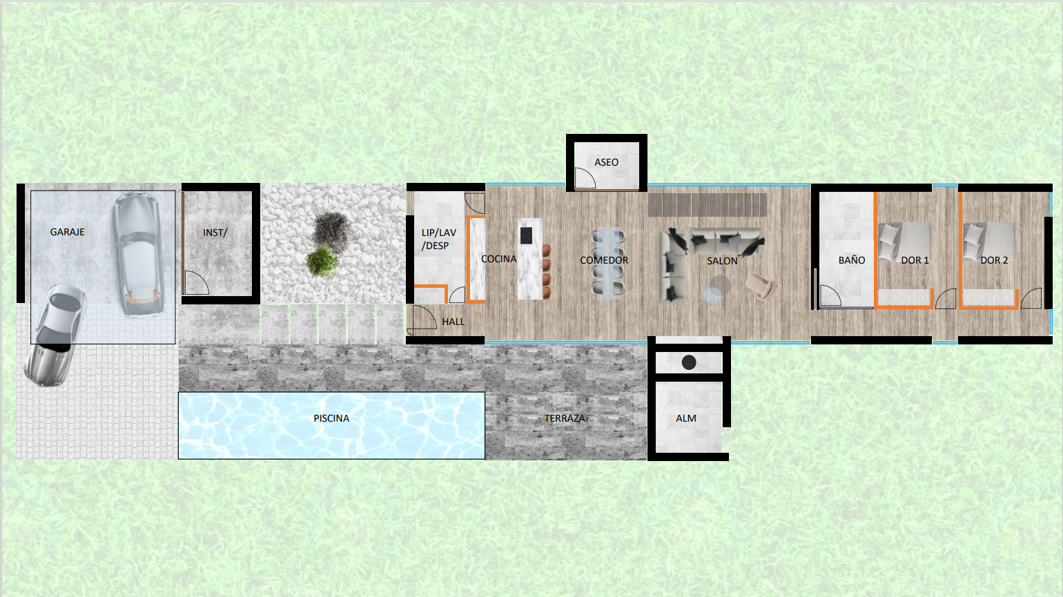 Vivienda en el campo, construida con materiales naturales y las últimas tecnologías diseñadas para crear un microclima saludable dentro y alrededor de la casa. La distribución gira en torno a la sala y se dispone de una planta primera independiente de dominio y vinculada a las vistas del entorno, cercanas y alejadas.